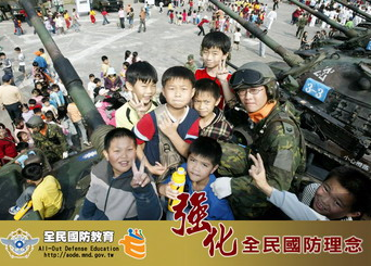 「全民國防」在政府多年來一直大力提倡,尤其在民國85年台海危機之後,更受各界重視,並認為「全民國防」是以軍民一體、文武合一的形式,不分前後方、平時戰時,將有形武力、民間可用資源與精神意志合而為一的總體國防力量。推動全民國防教育的意義在於「納動員於施政、寓戰備於經建、藏熟練於演訓」,使全國民眾建立「責任一體、安危一體、禍福一體」的共識,達到全民關注、全民支持、全民參與、全民國防的最高裡想。